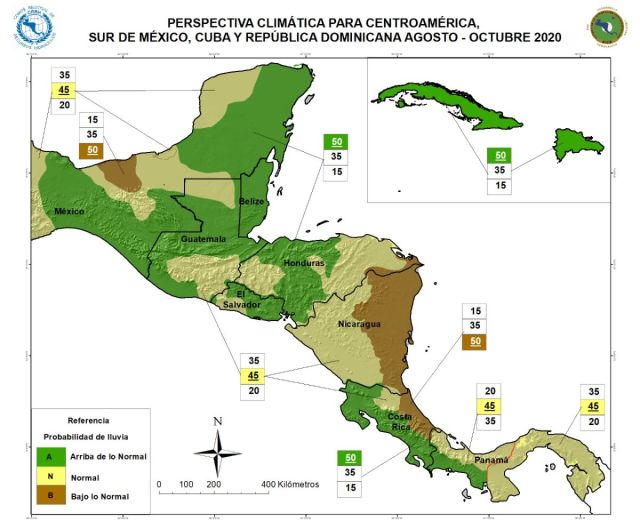 En relación a la temporada lluviosa, las zonas en gran parte de Guatemala, El Salvador (zona oriente, paracentral y segmentos de San Salvador y occidente del país), el centro de Honduras, el Pacífico de Costa Rica, el Pacífico oeste de Panamá; y República Dominicana y Belize en todo el país, tendrán una temporada de lluvias arriba de lo normal.